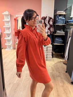 Robe en denim coloré Col montant Fermeture par boutons...