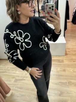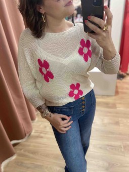 PULL FLEUR - BEIGE