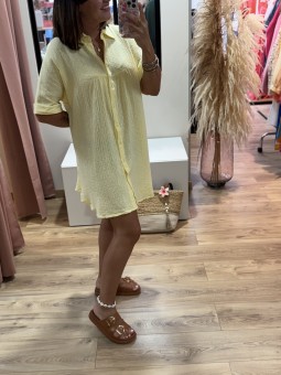 1 more image Aperçu rapide ROBE ROMY Robe chemise en gaze de coton Manches courtes Petits points... 39,90 € JAUNE FUSHIA S/M M/L Ajouter au panier favorite 0 1 Retour en haut