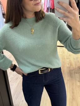 Pull en maille Col rond Effet duveteux Maille douce Manches...