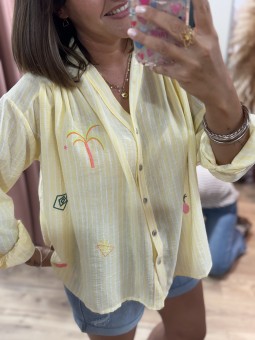 Chemise en coton a rayures Coupe oversized Boutons écailles...