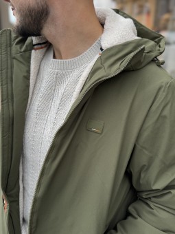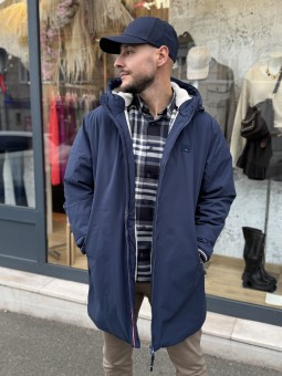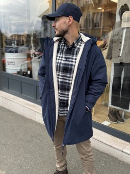 Parka mi longue kaki Intérieur marine Poche intérieur Effet...