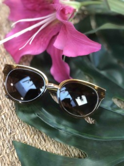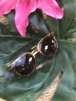 Lunettes de soleil camel/ noires Détails dorés