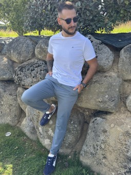 Pantalon coupe chino. Poches plates. Deux longueurs de jambe....