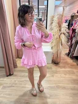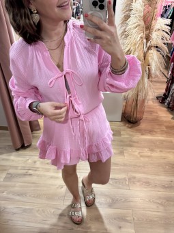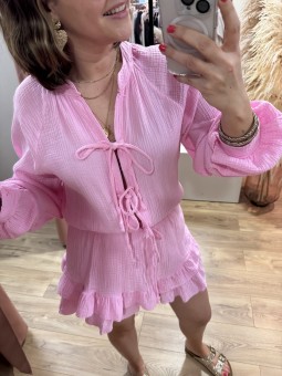 Combi-short en gaze de coton Effet jupe short Haut à nouer à...