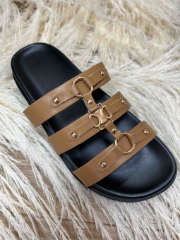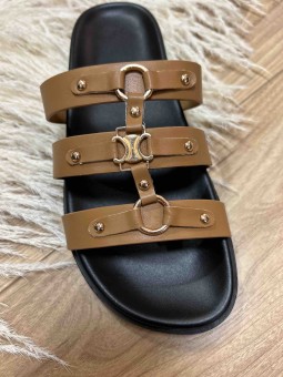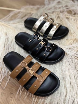 Sandales 2 lanières à boucles dorées Semelle moulée très...