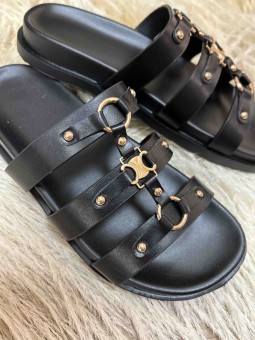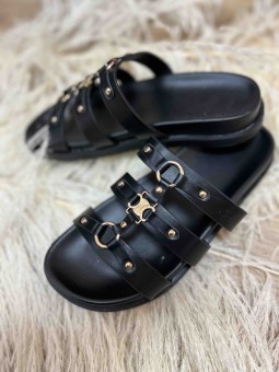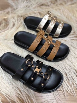 Sandales 2 lanières à boucles dorées Semelle moulée très...
