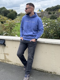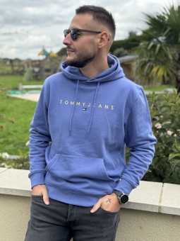 Sweat à capuche. Coloris bleu gris. Petit logo TOMMY JEANS...