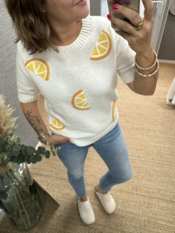 Petit pull à motifs orange tricotés Manches courtes pas de...