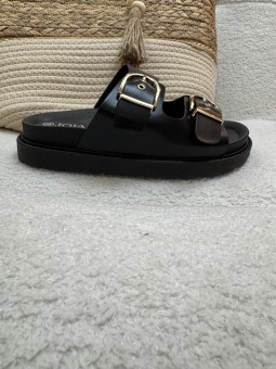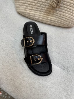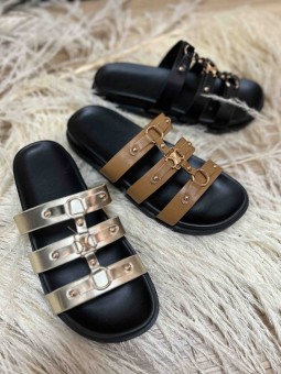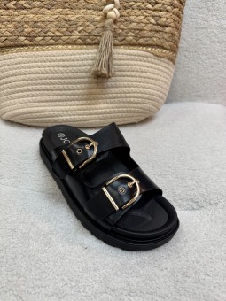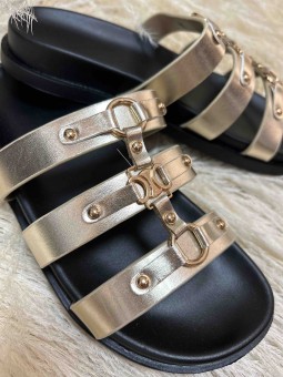Sandales 2 lanières à boucles dorées Semelle moulée très...