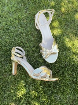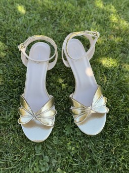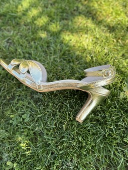 Sandales à petit talon en simili doré Effet fleur à l'avant
