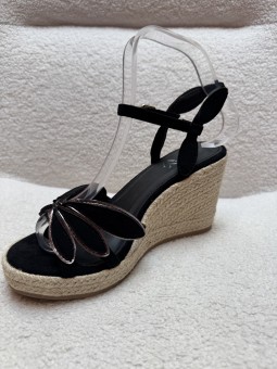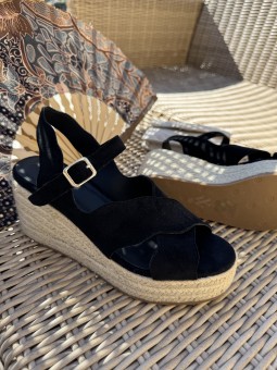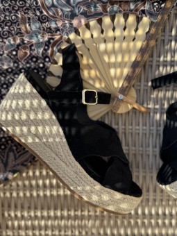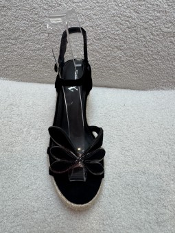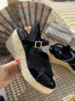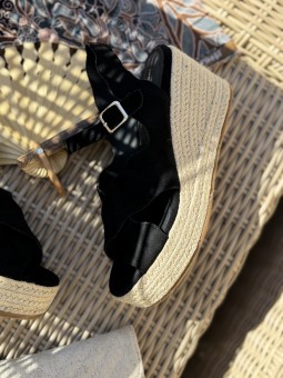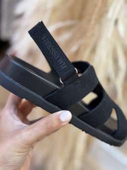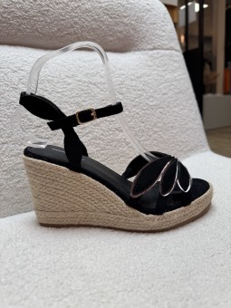 Sandales en suédine noire Brides en forme de pétales de fleurs...