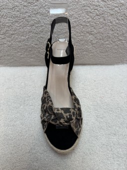 Sandales en suédine noire Brides nouées en tweed beige à...