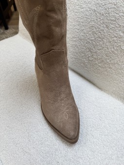Bottes à petits talons aspect daim taupe Décors sangles...