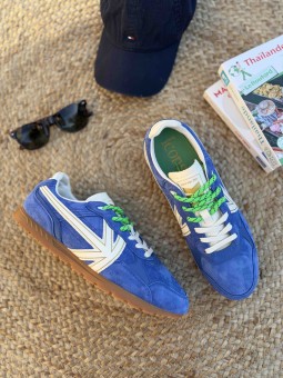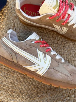 Basket à empiècement en cuir suède et tissu Couleurs pastels...
