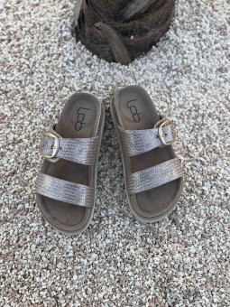 Sandales 2 lanières à boucles dorées Semelle moulée très...