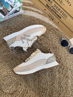 Basket Vanessa wu à lacets. Coloris : or , bleu roi, kaki....