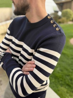 Pull marinière Col rond à boutons Patch EOM en bas du pull