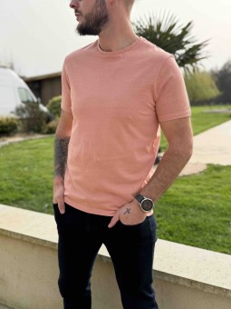 T-shirt EOM coloris pêche. Back print (logo et dessin) Col rond