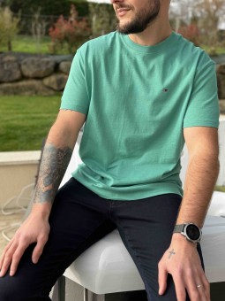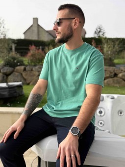 T-shirt uni vert Tommy Jeans Logo brodé Col rond