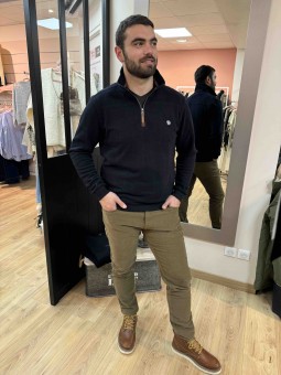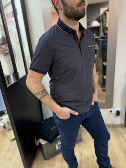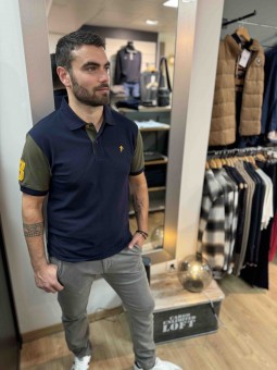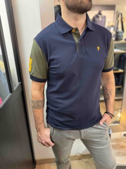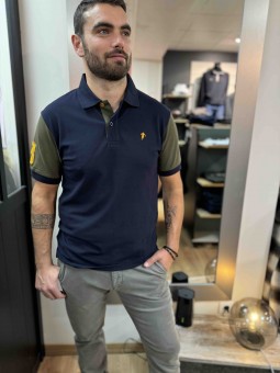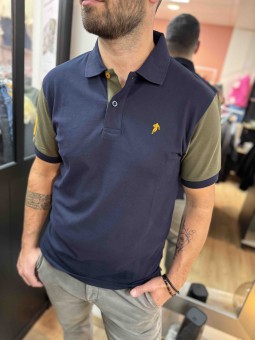 Polo à manches courtes bi color. Kaki- marine. Logo brodé sur...