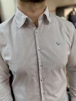 Chemise imprimé élégante Fond rayé gris Motif floral...