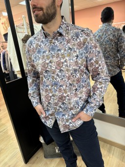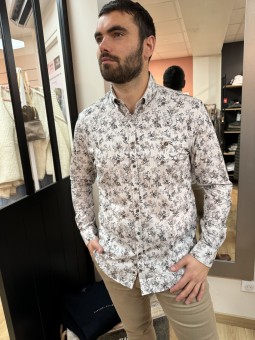 Chemise manches longues à motifs. Petites fleurs imprimées....