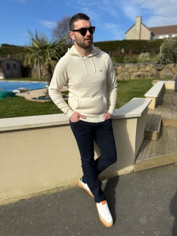 Sweat en maille à capuche Logo brodé sur la poitrine Poche...