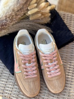Basket en cuir Coloris : vieux rose et vert Touché peau de...
