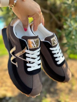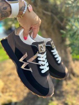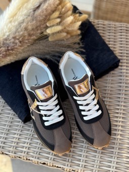 Baskets à lacets. Dessus en tissus. Coloris : or, noir,...