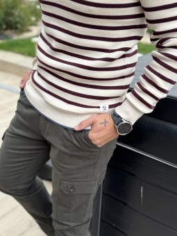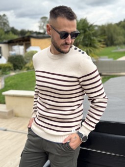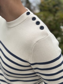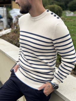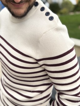 Pull marinière Bouton sur l'épaule Rayures bleues ou marron/...
