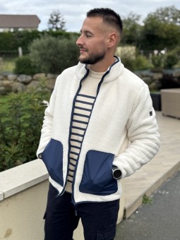 Veste en sherpa Beige et détails marine Intérieur en polaire...