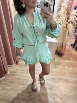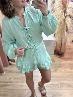 Combi-short en gaze de coton Effet jupe short Haut à nouer à...