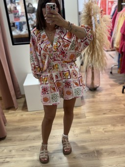 Combishort imprimé manches chauve souris 2 poches Taille...