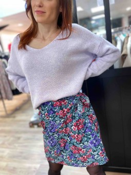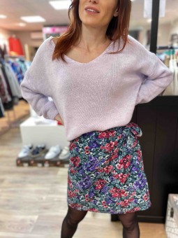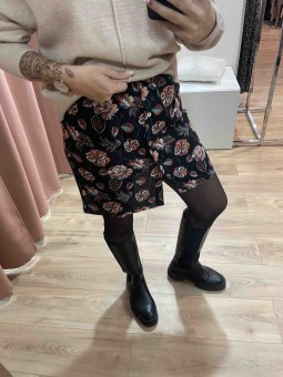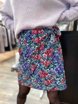 Jupe courte imprimé fleuri tons rose et orange taille...