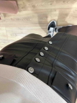 Jupe courte en simili cuir Poches plates avec pressions sur le...