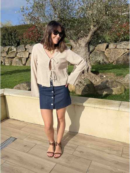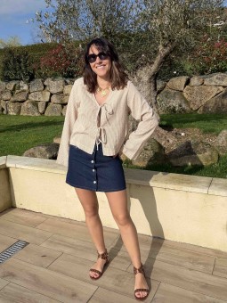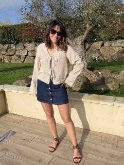 Aperçu rapide NouveauBLOUSE ZOE Blouse à nouer en seersucker Motif vichy beige Manches longues... 36,99 € BEIGE XS S M L XL Ajouter au panier favorite 0 Jupe courte en denim brutTaille hauteLucie mesure 1m65