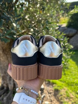 Gant noir avec clous dorés sur le dessus. Zip doré sur le coté.