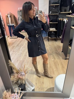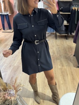 Robe en jean Coupe droite style chemise Col V 2 poches sur la...