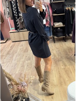 Bottes à petits talons aspect daim taupe Décors sangles...