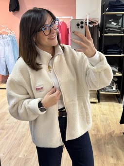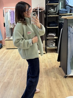 Veste sherpa avec patch sur la poitrine Patch : la vie est...