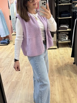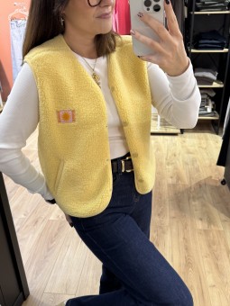 Gilet sherpa sans manches Patch écrit soleil sur la poitrine...