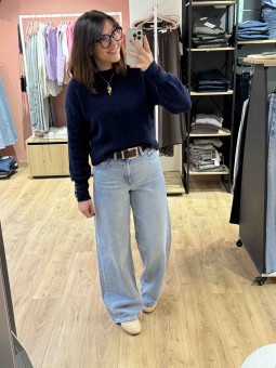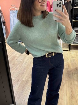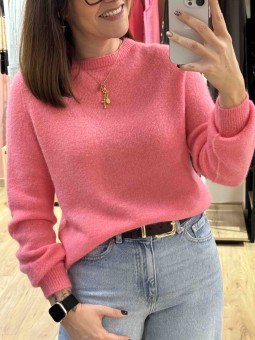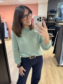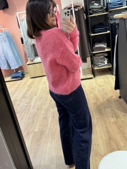 Pull en maille Col rond Effet duveteux Maille douce Manches...