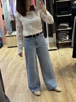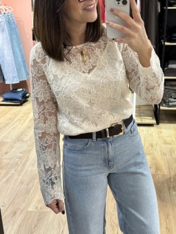 Blouse ajourée en broderie Motif floral Manches et bas en...
