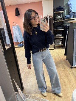 Pull en maille Col rond Boutons sur les manches Coupe courte