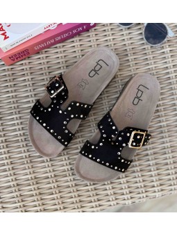 Mules noir en suedine cloutées LES PETITES BOMBES Semelle en...