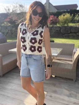 Top en crochet Motif floral bordeaux et kaki Fermeture par...