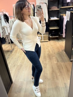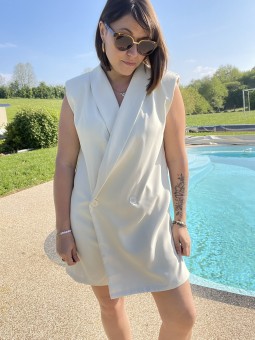 Combi short blazer sans manches Effet cache cœur 2 boutons à...