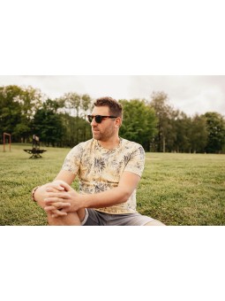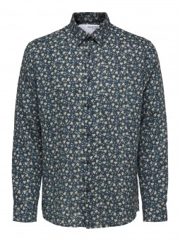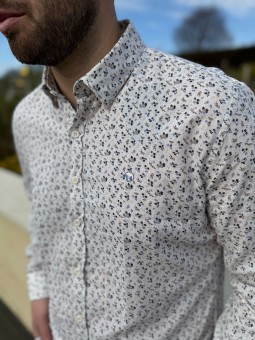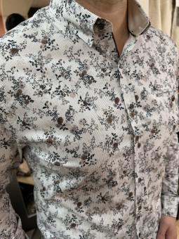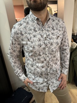 Chemise imprimé élégante Fond rayé gris Motif floral...