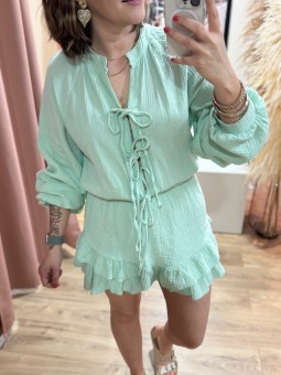 Combi-short en gaze de coton Effet jupe short Haut à nouer à...